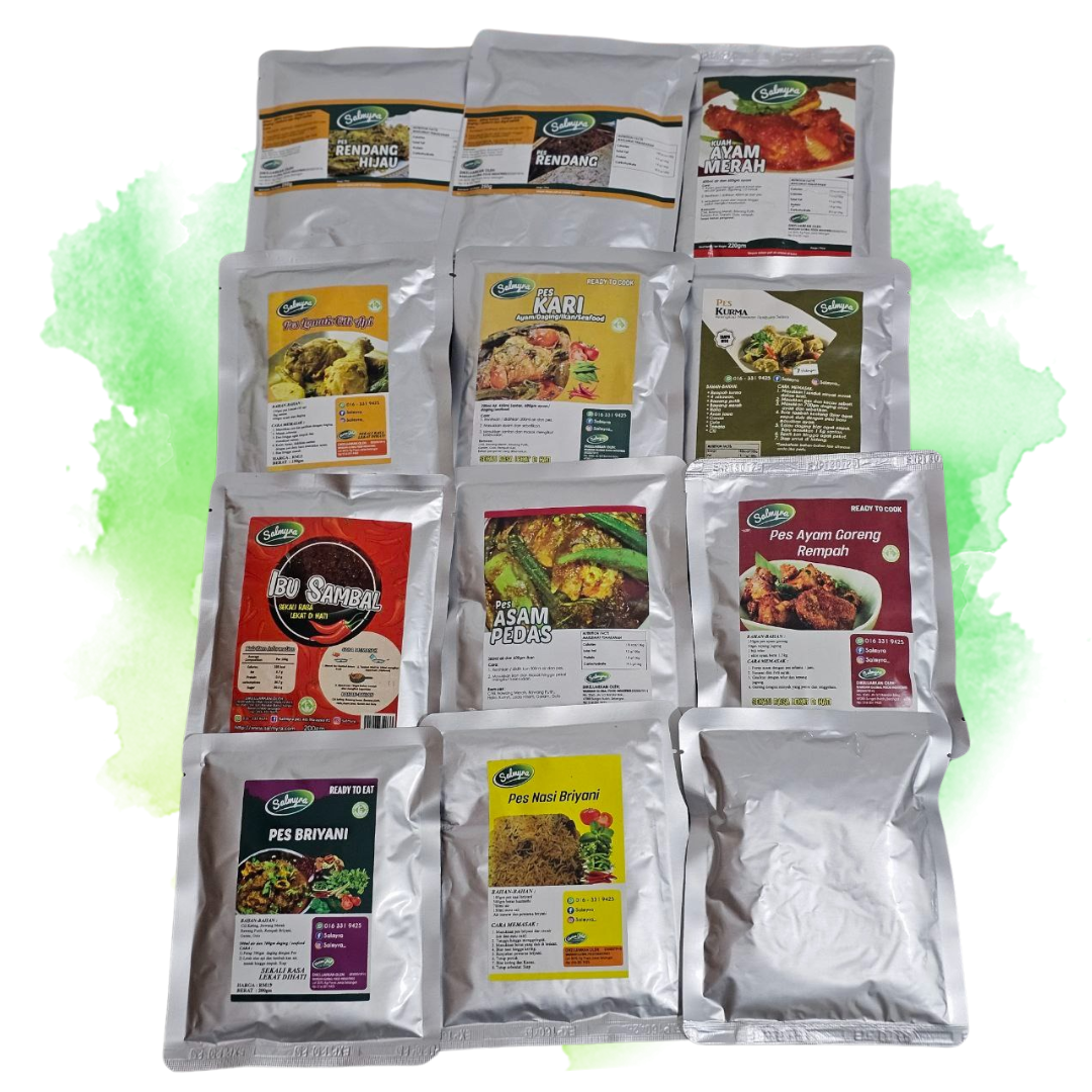 Di Salmyra, kami membawa kepada anda aneka pilihan makanan tradisional Malaysia dalam bentuk pes dan makanan sedia dimakan (ready to eat). Setiap hidangan dikilangkan dengan teliti menggunakan resipi asli turun-temurun bagi memastikan keaslian rasa yang memikat hati.